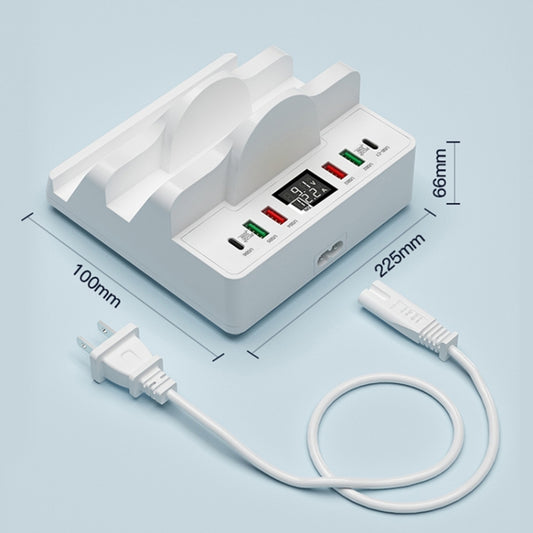 WLX-818F 6 في 1 10 وات QC3.0 شحن لاسلكي + USB-C / Type-C + شاحن 4 منافذ USB مع شاشة عرض LCD ذكية، قابس الاتحاد الأوروبي / الاتحاد الأفريقي