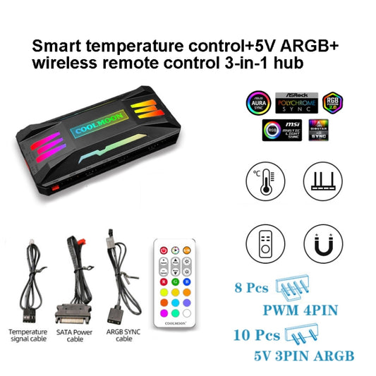 COOLMOON CM-MPAC PWM 5V ARGB Cooling Fan Remote Control For PC Case Chassis, Style: 3 in 1 Controller (Black)