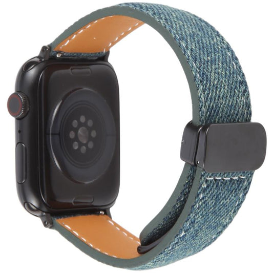 For Apple Watch 42mm / 41mm / 40mm / 38mm Folding Magnetic Buckle Denim Leather Watch Band(Royal Blue)