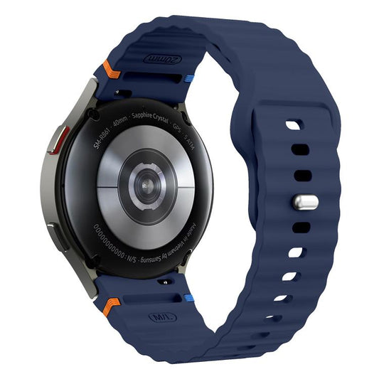 For Samsung Galaxy Watch 7 40mm / 44mm Wavy Grain Stitched Reverse Buckle 20mm Silicone Watch Band(Midnight Blue)