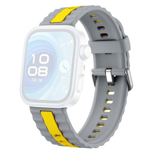 For Huawei Watch Fit 4 Pro / Fit 4 / Fit 3 xDfind Sport Vertical Striped Two Color Silicone Watch Band(Silver Grey+Yellow)
