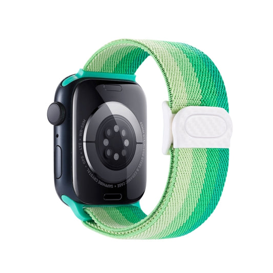 For Apple Watch Series 10 46mm Carbon Fiber Texture Snap Buckle Nylon Watch Band(Gradient Green)