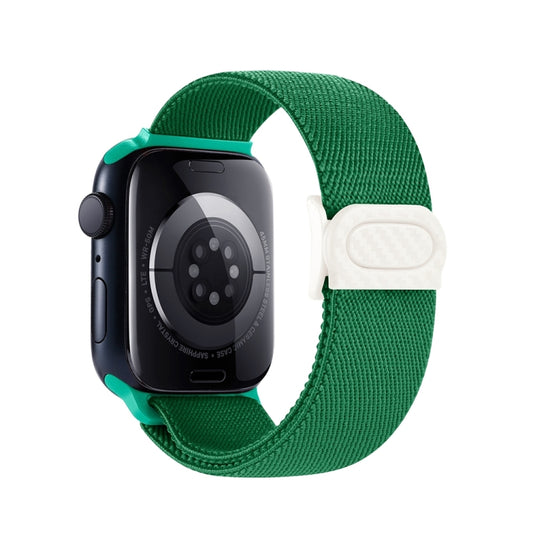 For Apple Watch Series 10 42mm Carbon Fiber Texture Snap Buckle Nylon Watch Band(Green)