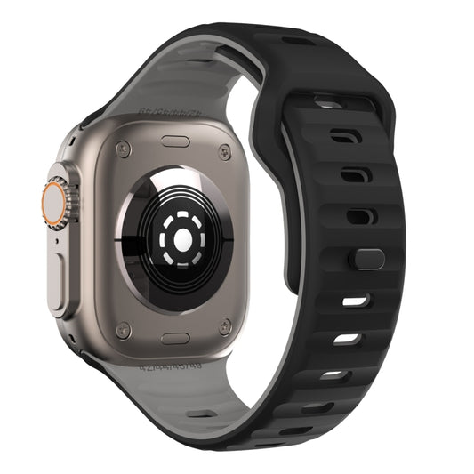 For Apple Watch Series 10 46mm Wave Texture Reverse Buckle Silicone Watch Band(Black Grey)