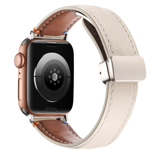 Magnetic Buckle Stitched Genuine Leather Watch Band For Apple Watch 46mm / 49mm / 45mm / 44mm(White Milk)