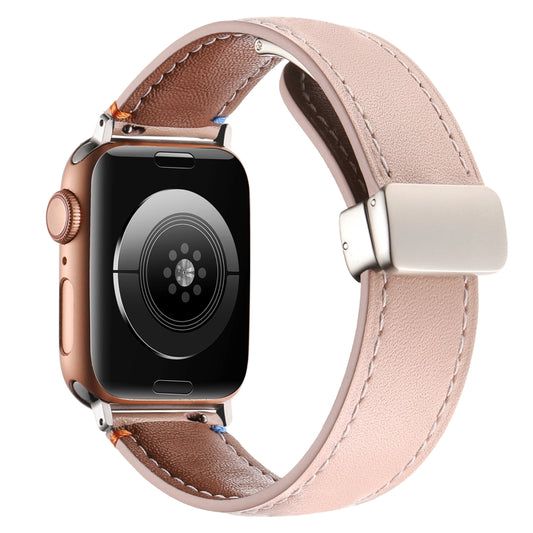 Magnetic Buckle Stitched Genuine Leather Watch Band For Apple Watch 46mm / 49mm / 45mm / 44mm(Pink)