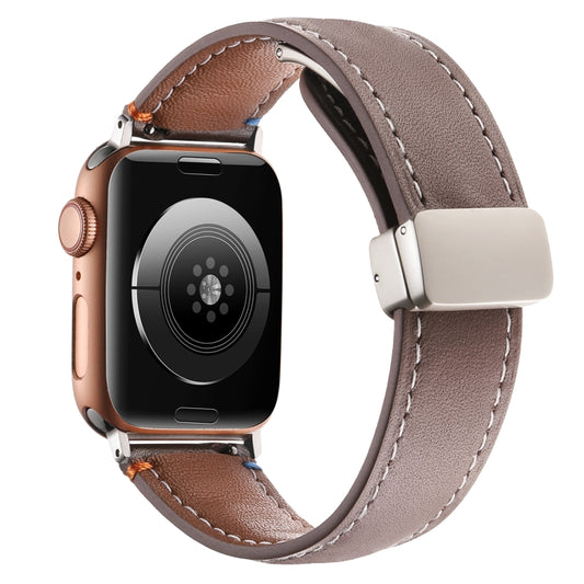 Magnetic Buckle Stitched Genuine Leather Watch Band For Apple Watch 42mm / 41mm / 40mm / 38mm(Dark Brown)