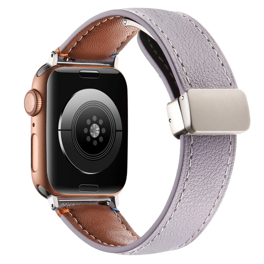 Magnetic Buckle Stitched Genuine Leather Watch Band For Apple Watch 46mm / 49mm / 45mm / 44mm(Purple)