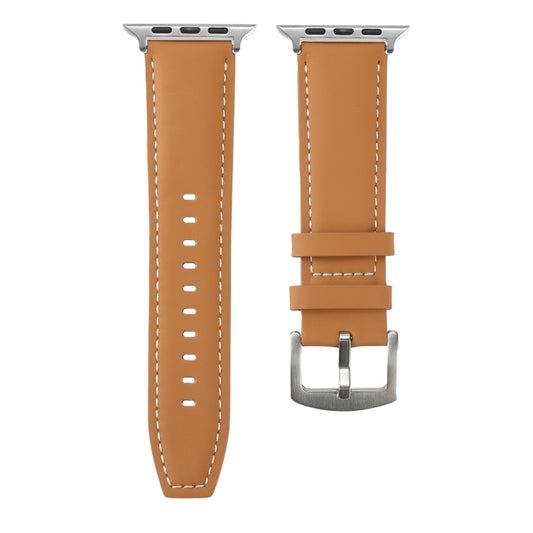 Plain Genuine Leather Watch Band For Apple Watch 42mm / 41mm / 40mm / 38mm(Yellow Brown)