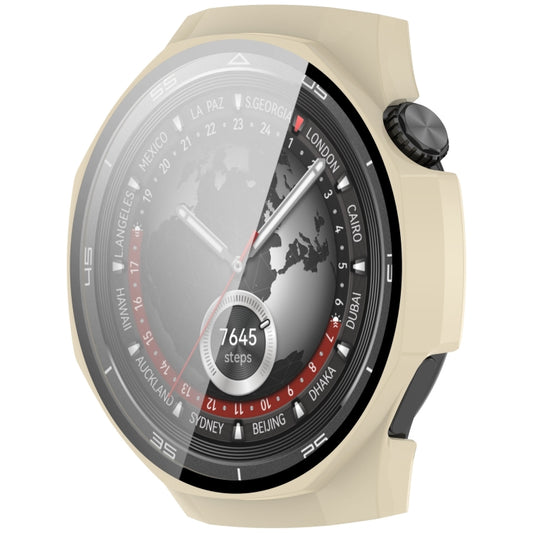 For Huawei Watch GT 5 Pro 46mm Ordinary Style Tempered Glass Film Integrated PC Watch Case(Ivory White)