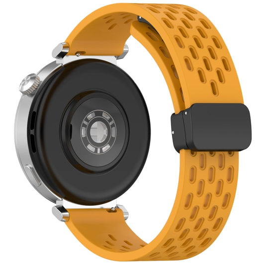 For Huawei Watch GT5 Pro 42mm Folding Magnetic Buckle Silicone Watch Band(Yellow)