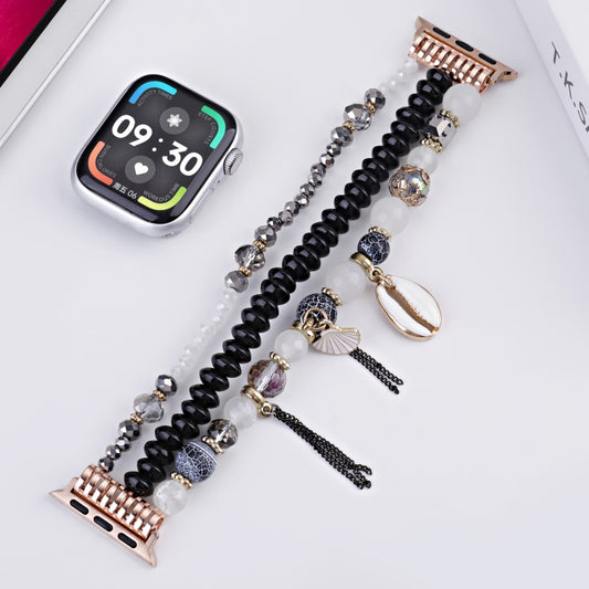 For Apple Watch 46mm / 49mm / 45mm / 44mm Shell Beads Chain Watch Band(Black)