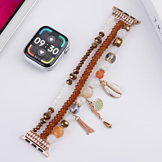 For Apple Watch 42mm / 41mm / 40mm / 38mm Shell Beads Chain Watch Band(Brown)