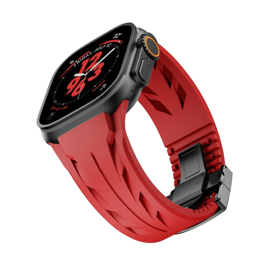 For Apple Watch 44mm / 45mm / 46mm / 49mm Tailor Stainless Steel Black Butterfly Buckle Silicone Watch Band(Red)