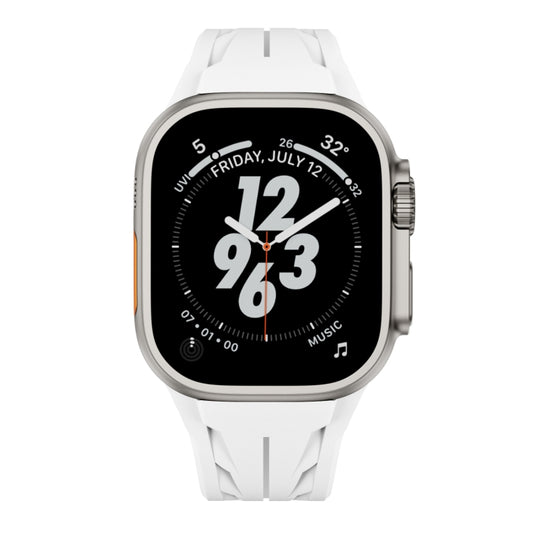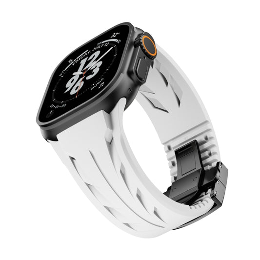 For Apple Watch 44mm / 45mm / 46mm / 49mm Tailor Stainless Steel Black Butterfly Buckle Silicone Watch Band(White)