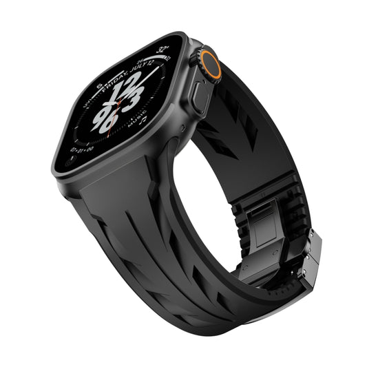 For Apple Watch 44mm / 45mm / 46mm / 49mm Tailor Stainless Steel Black Butterfly Buckle Silicone Watch Band(Black)