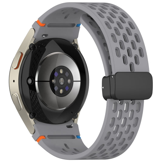 For Samsung Galaxy Watch 7 40 / 44mm Holes Style Stitched Folding Buckle Silicone Watch Band(Space Gray)
