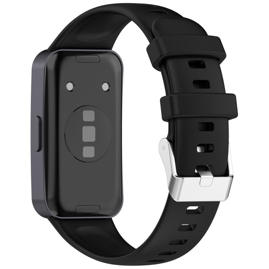 For Huawei Band 10 / 9 / 8 Silver Steel Buckle Soft Silicone Watch Band(Black)