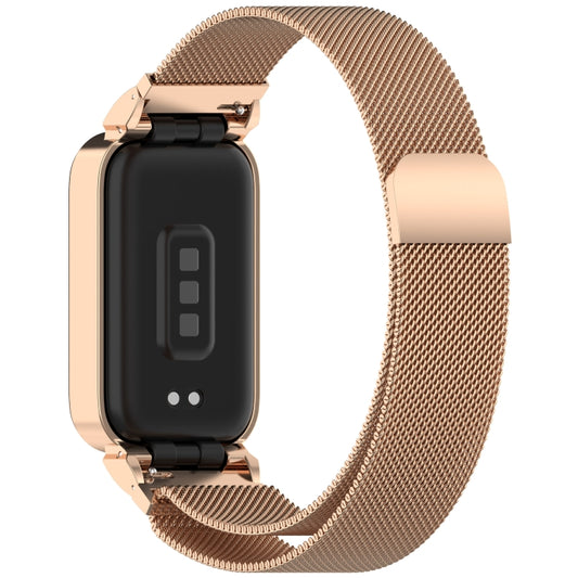 For Xiaomi Smart Band 9 Active / Redmi Band 3 Metal Frame Watch Case Integrated Milan Magnetic Watch Band(Rose Gold)