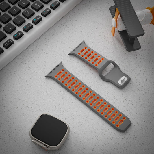 For Apple Watch 46mm / 49mm / 45mm / 44mm Single Nail Dual-Color Multi-hole Silicone Watch Band(Grey Orange)