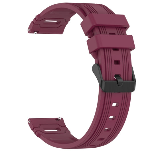 For Amazfit Watch 22mm Vertical Pattern Black Buckle Silicone Watch Band(Wine Red)