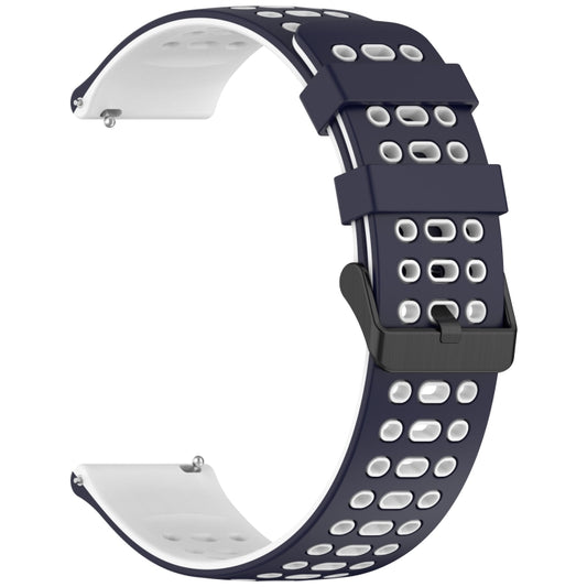 For Amazfit Watch 22mm Three Rows Hole Two Color Silicone Watch Band(Midnight Blue+White)