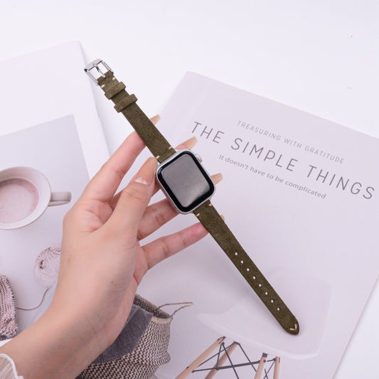 For Apple Watch 46mm / 49mm / 45mm / 44mm Matte Genuine Leather Watch Band(Olive Green)