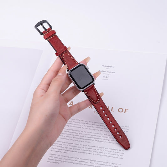 For Apple Watch 42mm / 41mm / 40mm / 38mm U-shape Genuine Leather Watch Band(Red)