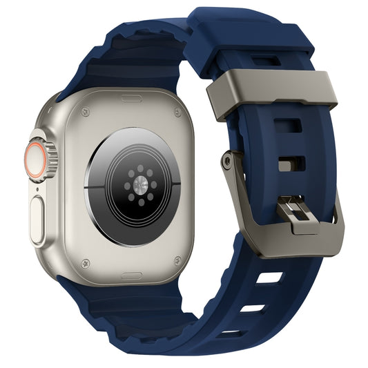 For Apple Watch 46mm / 49mm / 45mm / 44mm Wild Path Grey Buckle Thickened Silicone Watch Band(Ocean Blue)