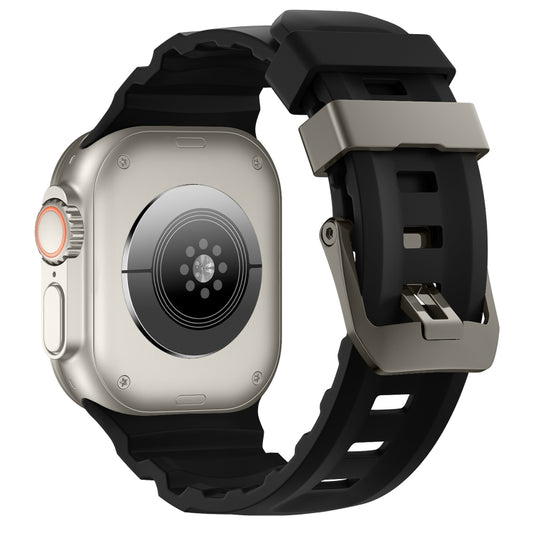For Apple Watch 46mm / 49mm / 45mm / 44mm Wild Path Grey Buckle Thickened Silicone Watch Band(Black)