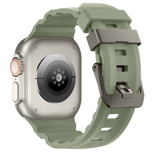 For Apple Watch 46mm / 49mm / 45mm / 44mm Wild Path Grey Buckle Thickened Silicone Watch Band(Milk Green)
