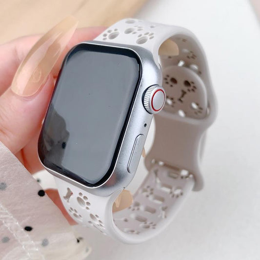 For Apple Watch 42mm / 41mm / 40mm / 38mm Dog Paw Bones Butterfly Buckle Silicone Watch Band(White)