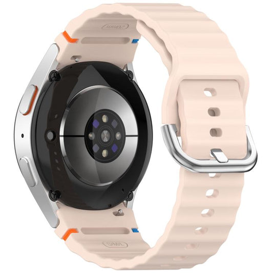 For Samsung Galaxy Watch 7 40 / 44mm Wavy Grain Stitched Silver Buckle Silicone Watch Band(Pink)