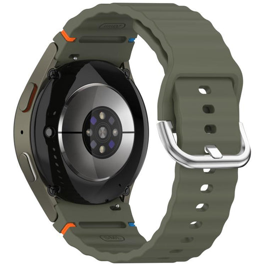 For Samsung Galaxy Watch 7 40 / 44mm Wavy Grain Stitched Silver Buckle Silicone Watch Band(Olive Green)