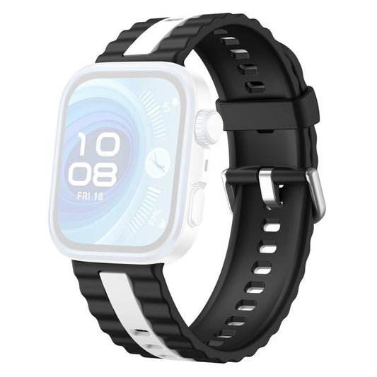 For Huawei Watch Fit 4 Pro / Fit 4 / Fit 3 xDfind Sport Vertical Striped Two Color Silicone Watch Band(Black+White)