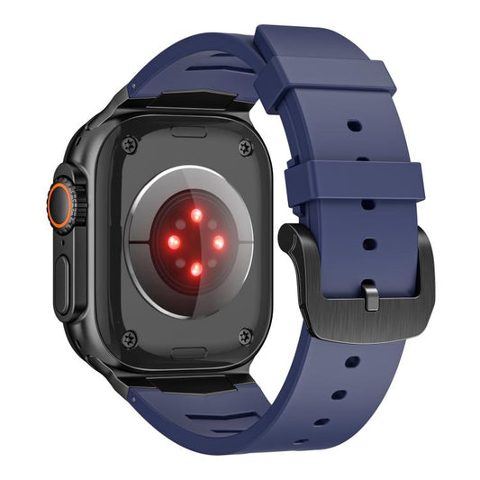 For Apple Watch Ultra / Ultra 2 49mm Stainless Steel Buckle Fluororubber Watch Band(Blue Black)