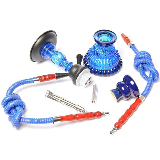 21-1011 Glass Double Pipe Hookah Set (Blue)