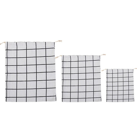 Cotton Linen Drawstring Pocket Sundries Storage Bag, Specification: Small+Medium+Large(Black Lattice)