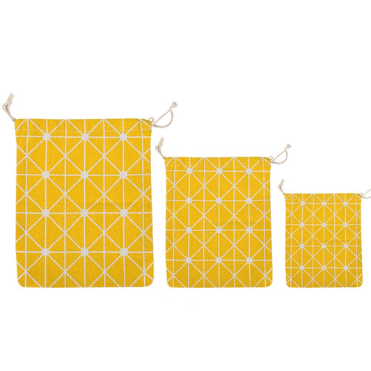 Cotton Linen Drawstring Pocket Sundries Storage Bag, Specification: Small+Medium+Large(Yellow Chessboard)