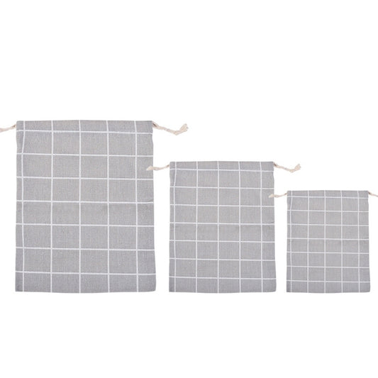 Cotton Linen Drawstring Pocket Sundries Storage Bag, Specification: Small+Medium+Large(Gray Lattice)