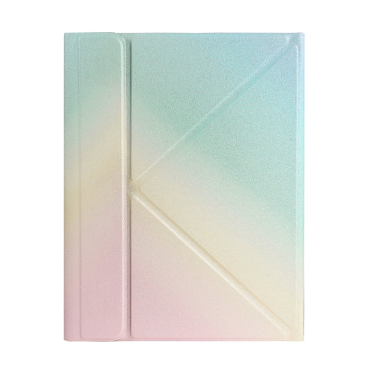 حافظة جلدية للكمبيوتر اللوحي B09S بإضاءة خلفية قابلة للفصل ولوحة مفاتيح بلوتوث مع حامل مثلث وفتحة قلم لجهاز iPad 10.2 2020 و2019 / Pro 10.5 بوصة / Air 3 10.5 بوصة (قوس قزح متدرج)