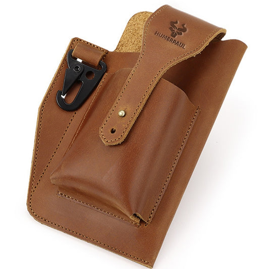 HUMERPAUL Retro Keychain Wears Belt Leather Mobile Phone Bag Men Waist Bag(Light Brown)