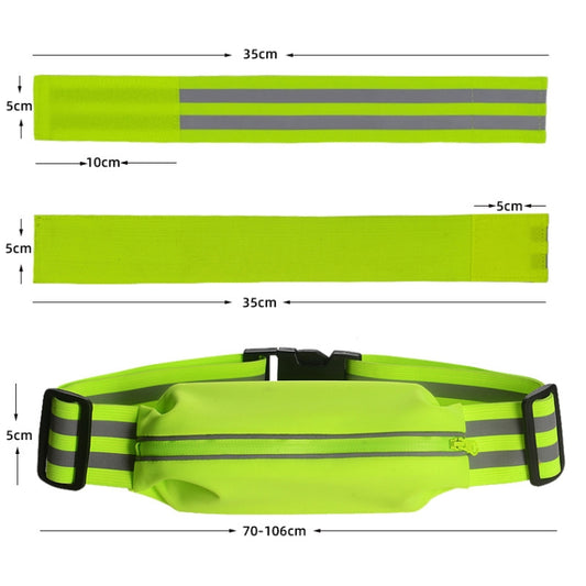 Women Men Running Bag Adjustable Reflective Waist Pouch Pack, Spec: 1 Belt+2 Arm Band(Fluorescent Green)