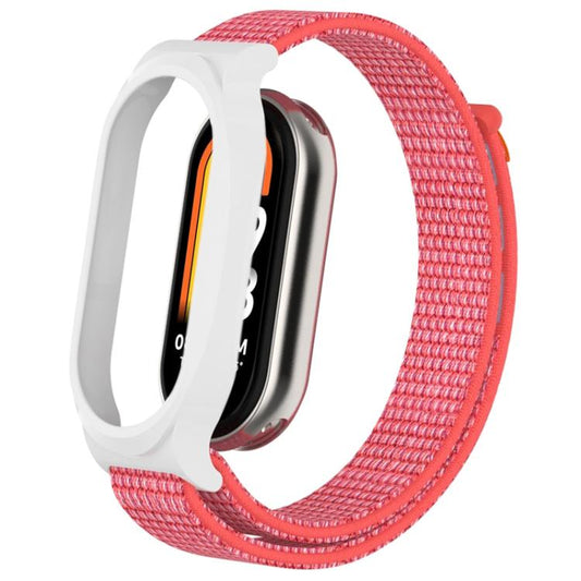 For Xiaomi Smart Band 8 PC Case Loop Nylon Hook and Loop Fastener Watch Band(Hibiscus Powder)
