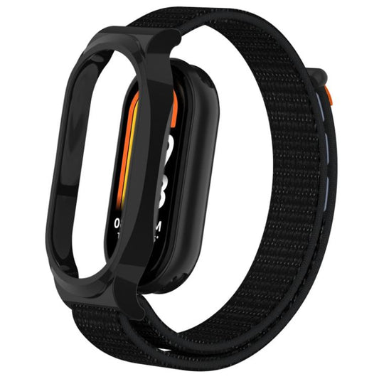 For Xiaomi Smart Band 8 PC Case Loop Nylon Hook and Loop Fastener Watch Band(Reflective Black)