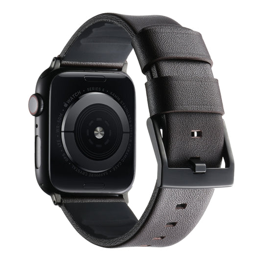 For Apple Watch SE 40mm Genuine Leather Hybrid Silicone Watch Band(Coffee Black Buckle)