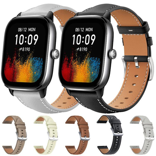 20mm For Amazfit GTS4 mini/GTS3/2/2E xDfind Flat Head Black Shark Fine Grain Leather Watch Band(Black)