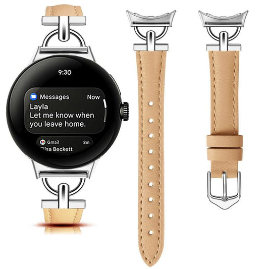 For Google Pixel Watch 1 / 2 / 3 41mm D-shaped Metal Small Waist Leather Watch Band(Khaki)