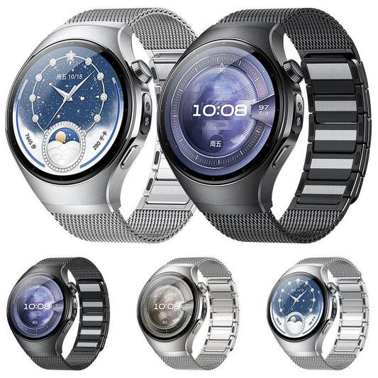For Huawei Watch 5 46mm Seamless Press Button Magnetic Woven I-Shaped Stainless Steel Watch Band(Silver)