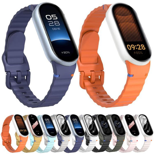 For Xiaomi Smart Band 10 / 9 / 8 Wavy Grain Stitched Silicone Watch Band(Midnight Blue)